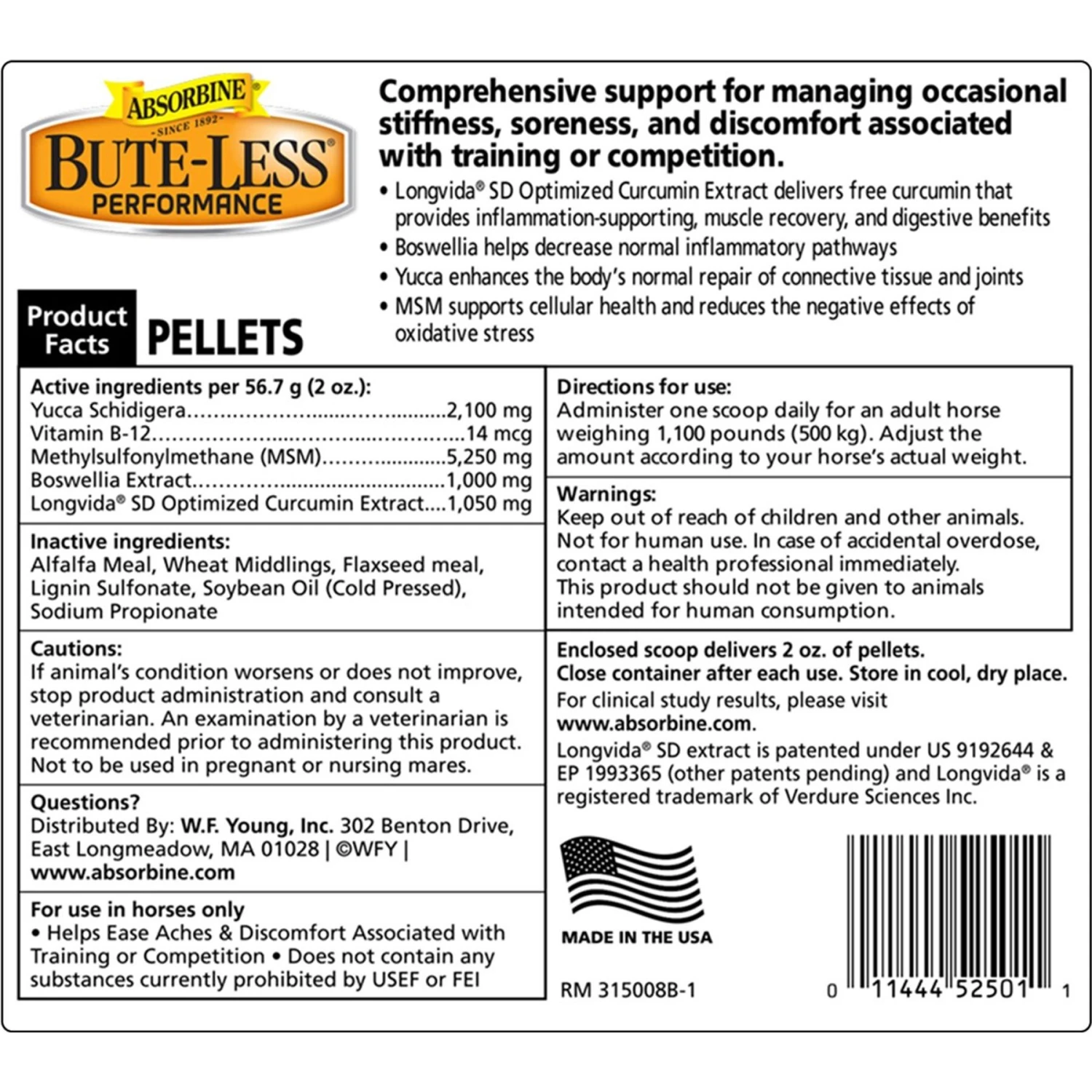 Absorbine Bute-Less Performance Comfort & Recovery Pellets Horse Supplement