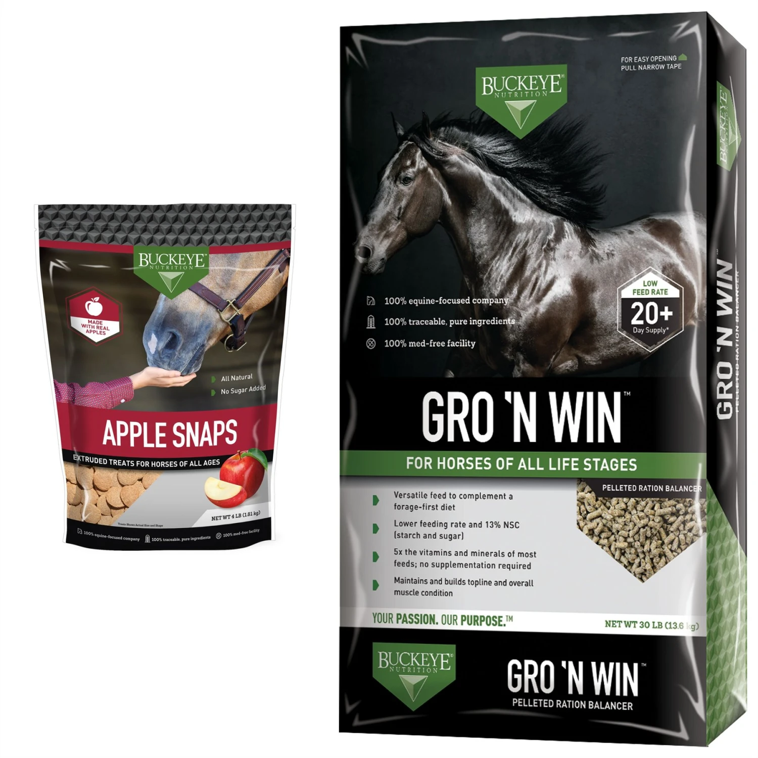 Buckeye Nutrition Gro ‘N Win Pelleted Horse Feed & Buckeye Nutrition All-Natural Apple Horse Treats