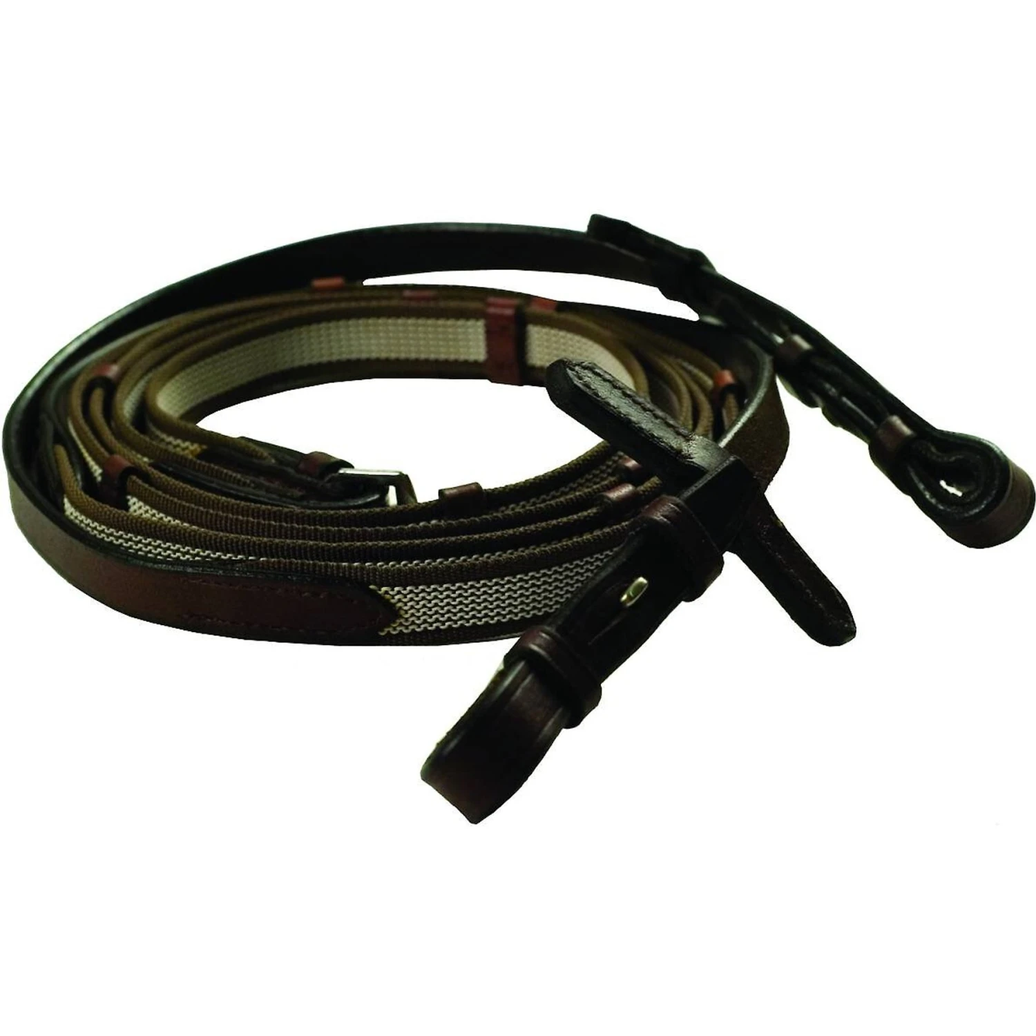 - Interwoven rubber offers added grip without the bulk of true rubber reins.