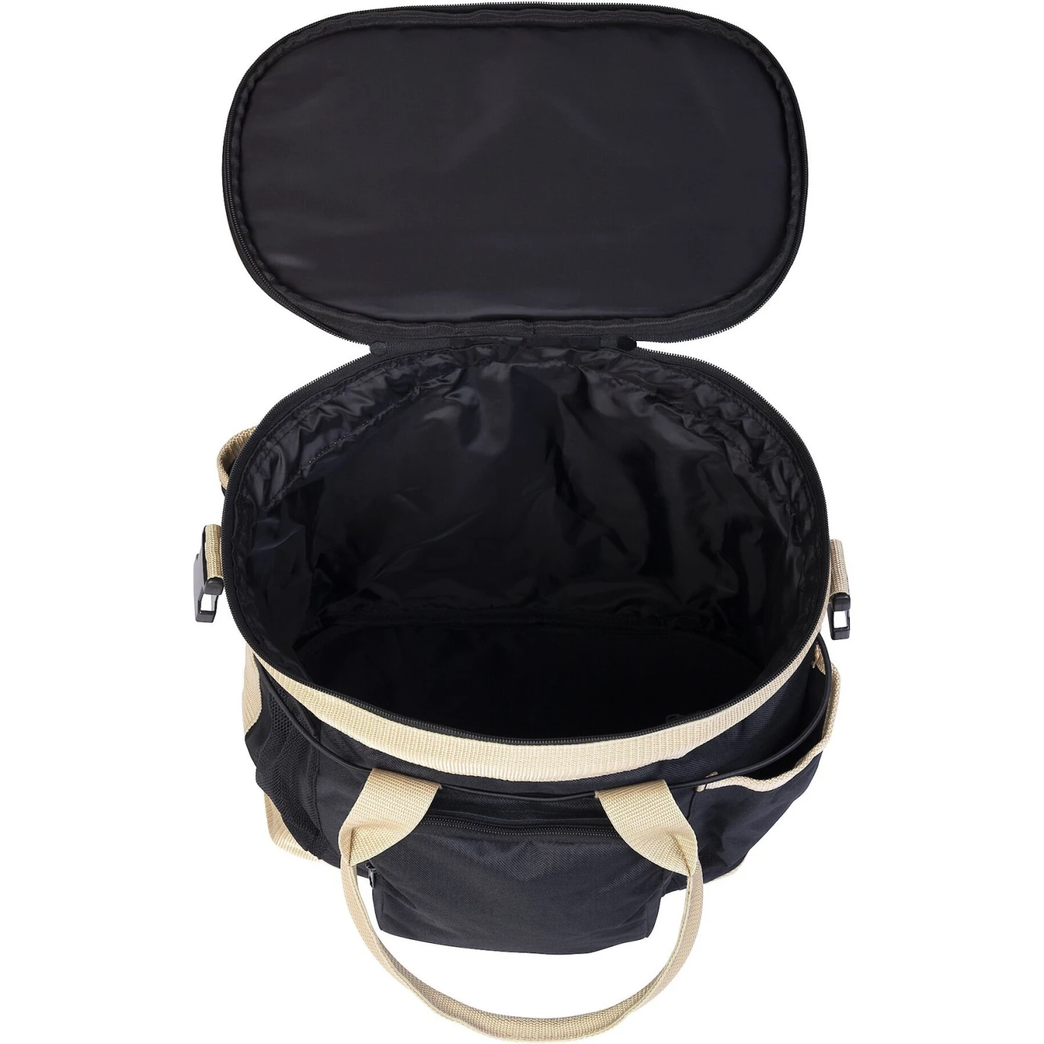 - Double handles and shoulder strap allow for hands-free carry.