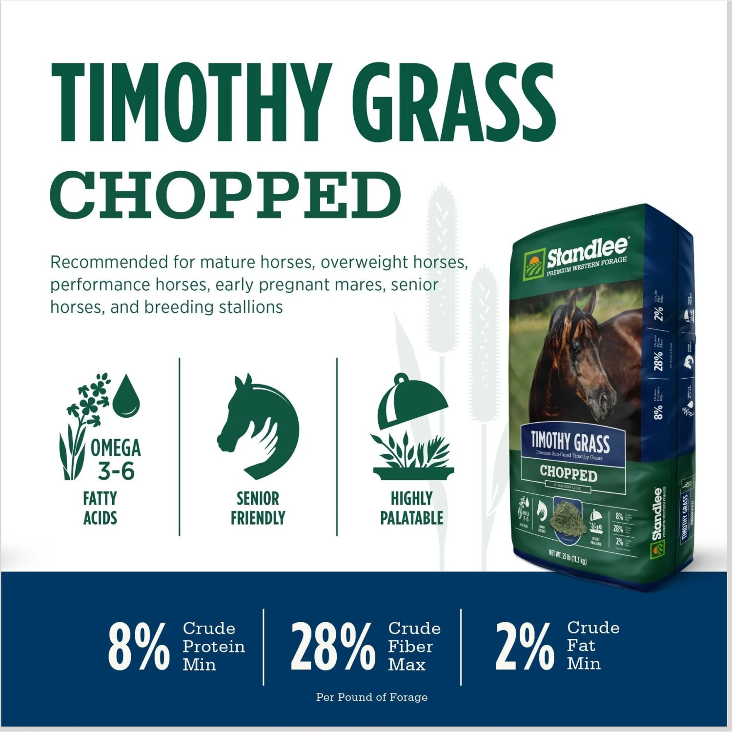 Standlee Premium Timothy Grass Chopped Forage Horse Feed, 25-lb Bag