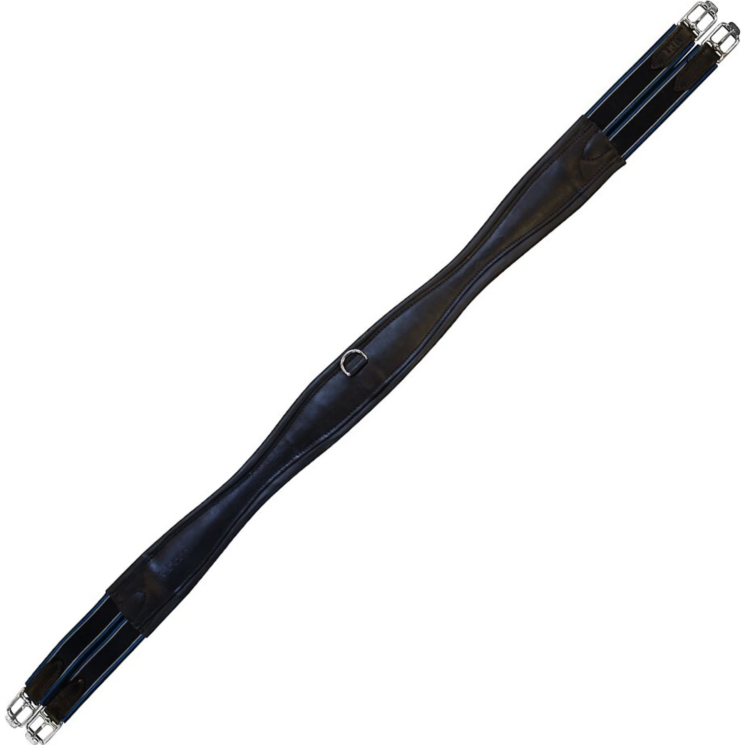 - High quality leather overlay girth featuring a centered D-ring and lay-flat buckles to reduce bulk.