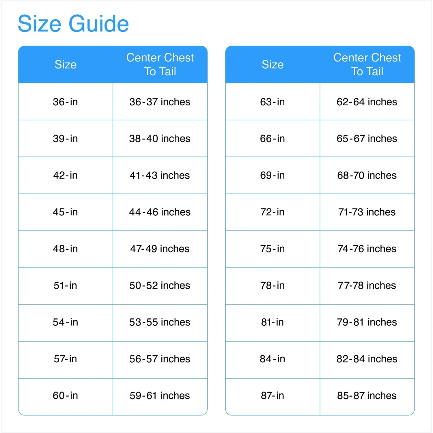 | Size | 66-in, 42-in, 45-in, 36-in, 39-in, 51-in, 48-in, 54-in, 60-in, 63-in, 57-in |