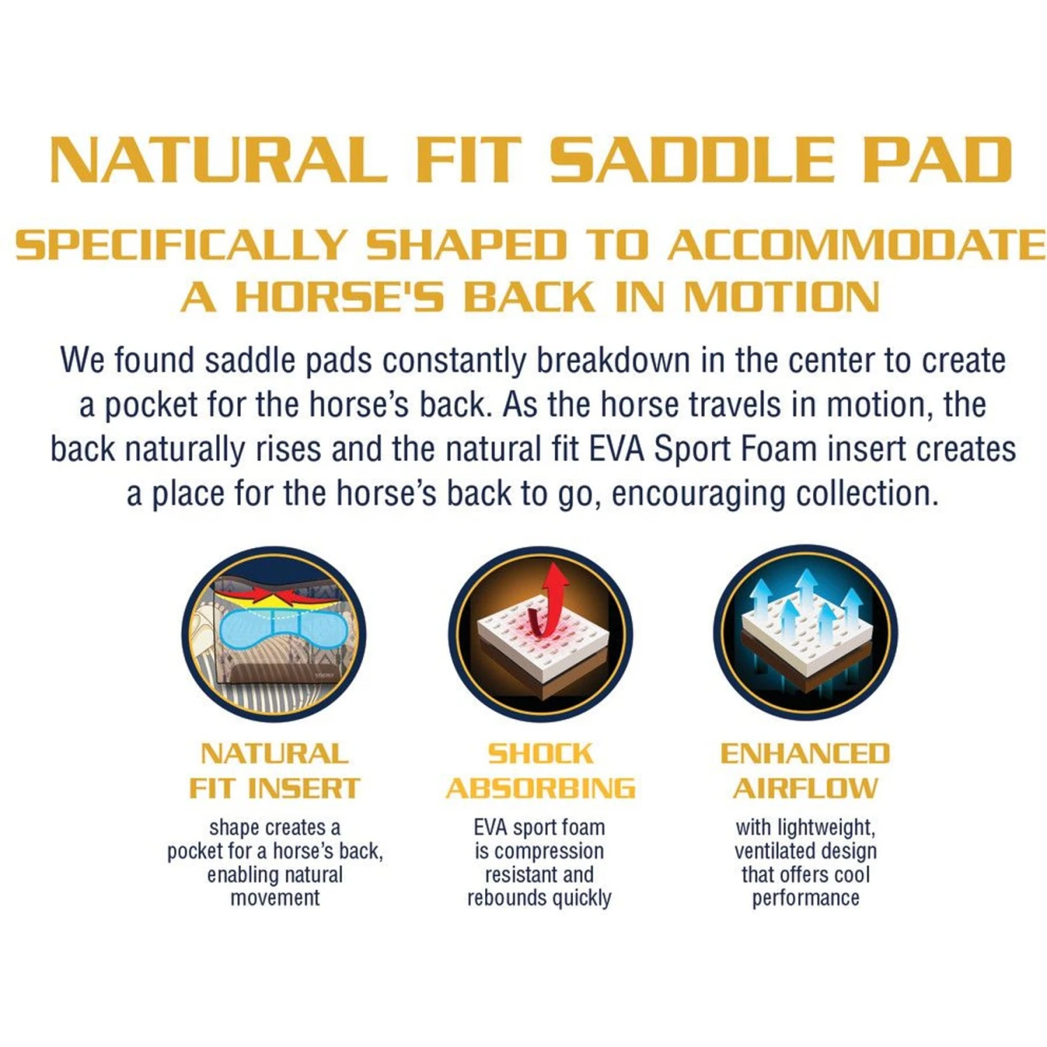 - Flexible contoured spine creates an anatomic fit and keeps the saddle pad center lifted into the saddle gullet.